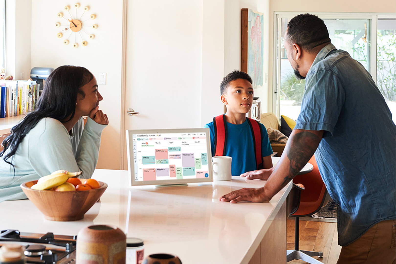 Three touchscreen display sizes designed to live where your family gathers most (kitchen, entryway, hallway).